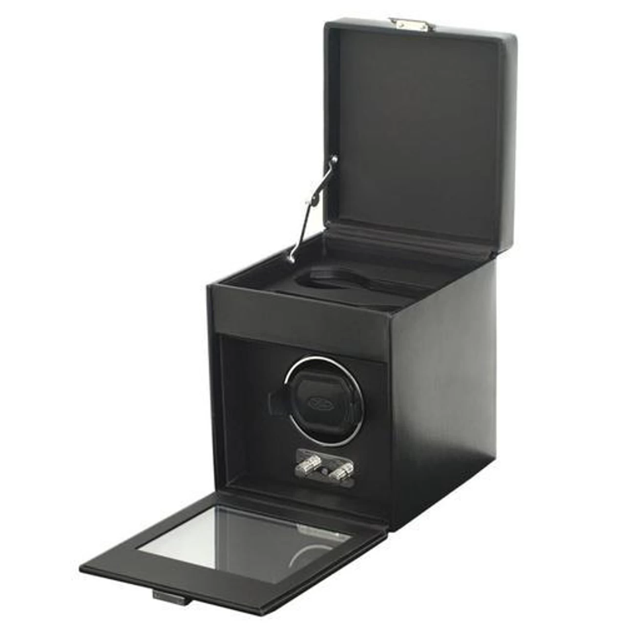 - This watch winder has a black leatherette finish, Glass cover, chrome finished hardware and a single winding module.